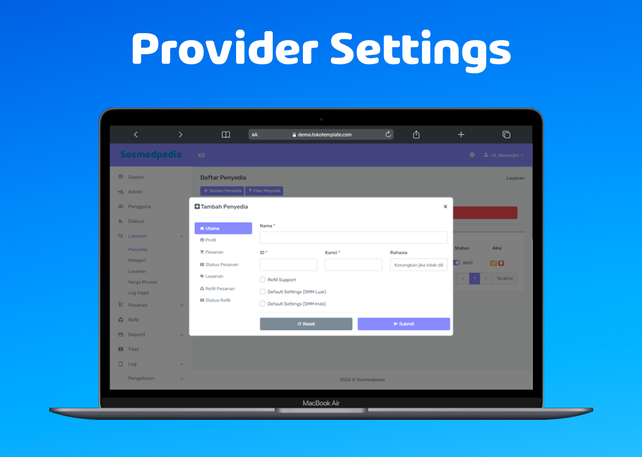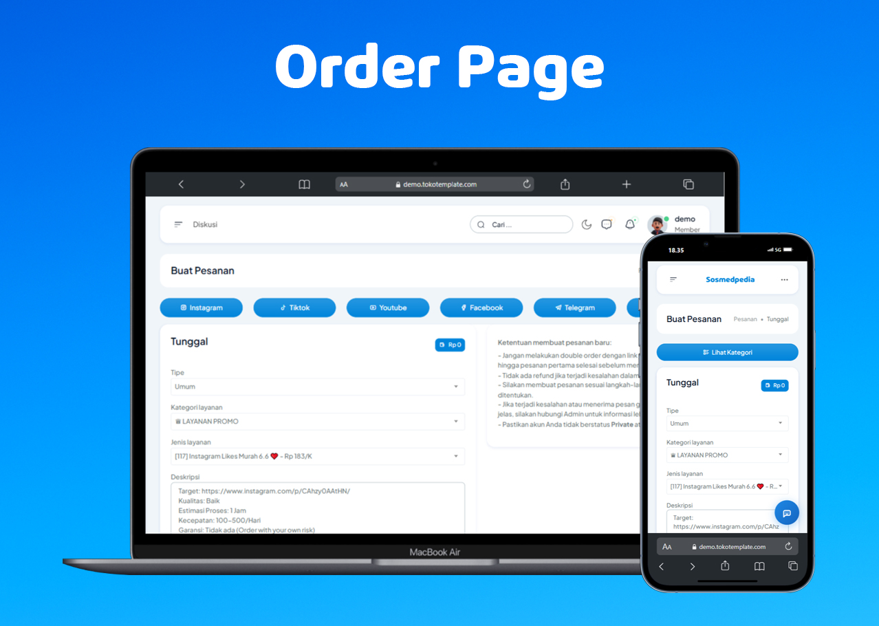 Sistem ini dirancang untuk reseller, agency, dan bisnis yang membutuhkan solusi scalable dalam mengelola layanan social media marketing dengan efisiensi tinggi. Dilengkapi dengan API lengkap, dashboard admin yang komprehensif, dan sistem pembayaran yang fleksibel untuk mendukung operasional bisnis SMM yang profesional.