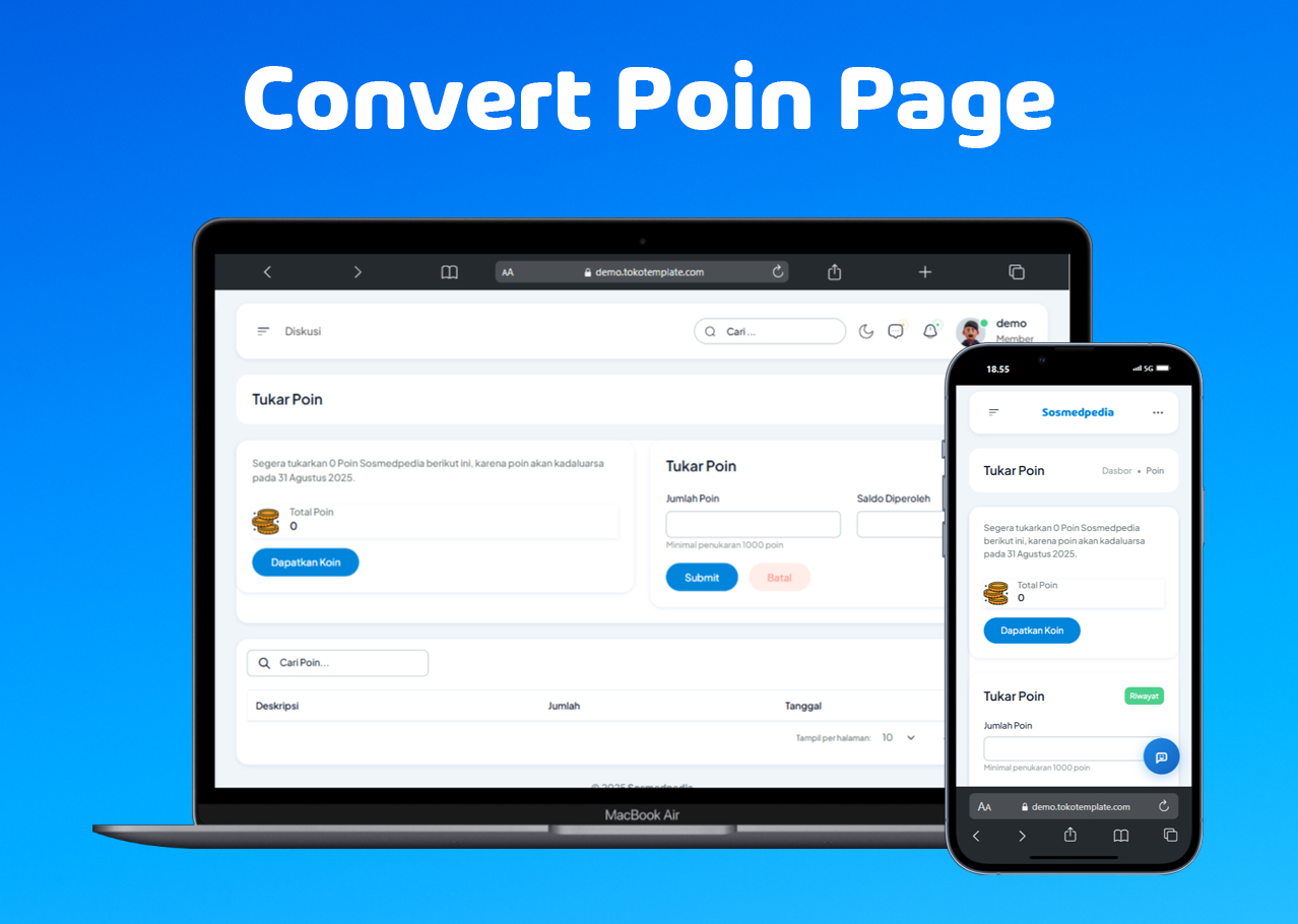 - Point-to-Balance Converter - Sistem konversi poin menjadi saldo akun otomatis
